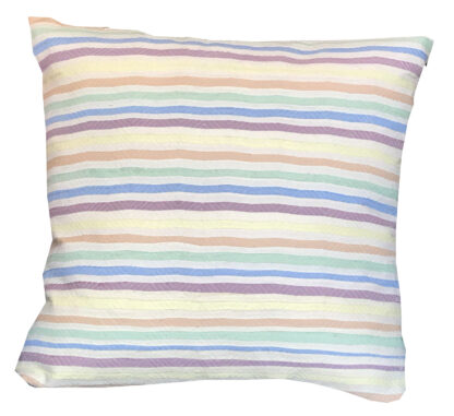 Introducing our new range of pleated cushions. Several pleats of fabrics are assembled to construct the top surface of the cushion. Held together by a decorative chevron stitch this style of cushions bring the stark simplicity alive. The Pastel stripes alternate with some mosaic stripes and create a unique look. The pastel stripes have a serene rhythm to them and the pastel shades can be combined with soft florals or plains. The texture of the pleats is the highlight of this product and the light colours pronounce this further.You can place these horizontal or vertical and accentuate the space.
