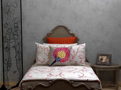 The Calyz Poppy Cushion brings the iconic beauty of the poppy flower into your home with rich texture, intricate detail, and artistic flair. Handcrafted in soft cotton using our signature collage fabric technique, the design captures the bold and sculptural form of the poppy, celebrating its captivating petals through layered fragments of fabric. Each petal is thoughtfully constructed with tonal depth and vivid accents, creating a striking centrepiece that immediately draws the eye.